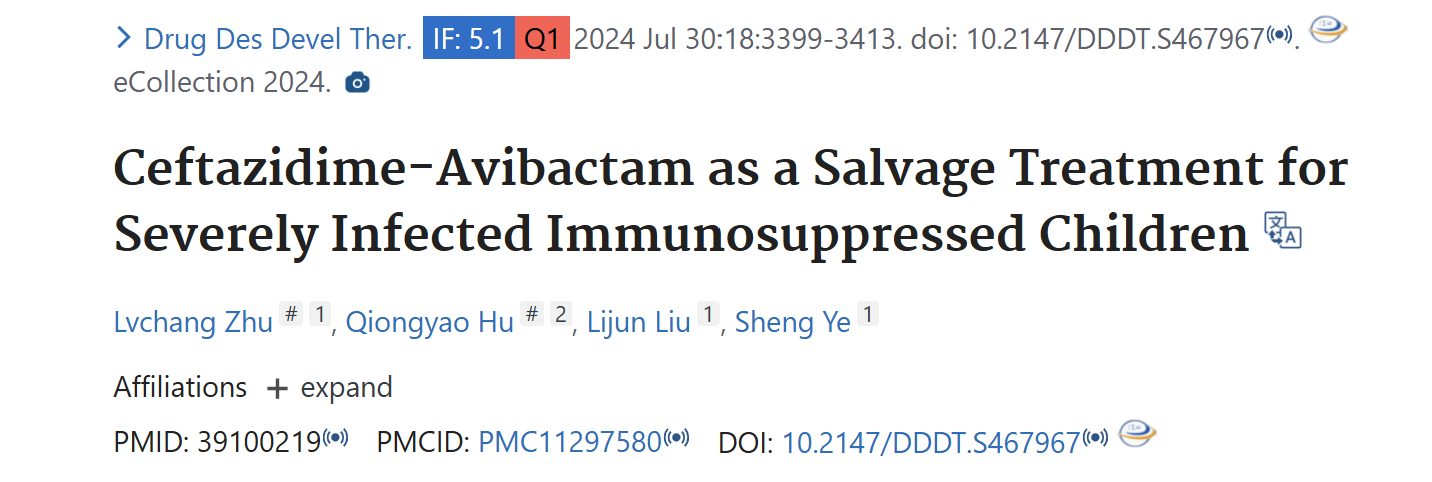 2024年7月30日,在《Drug design,development and therapy》上發(fā)表一篇名為“Ceftazidime-Avibactam as a Salvage Treatment for Severely Infected Immunosuppressed Children”的研究論文,本研究旨在評估頭孢他啶-阿維巴坦(CAZ/AVI)作為嚴重感染免疫抑制兒童的挽救治療的療效和安全性。