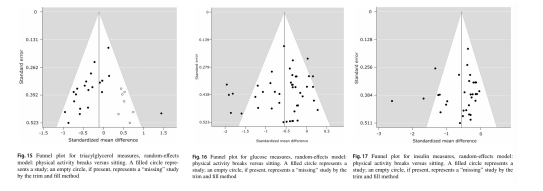 這提示在解釋PA間歇對甘油三酯影響的結(jié)果時需謹慎,可能存在部分陰性結(jié)果未發(fā)表的情況,而血糖和胰島素相關結(jié)果的可靠性相對更高。