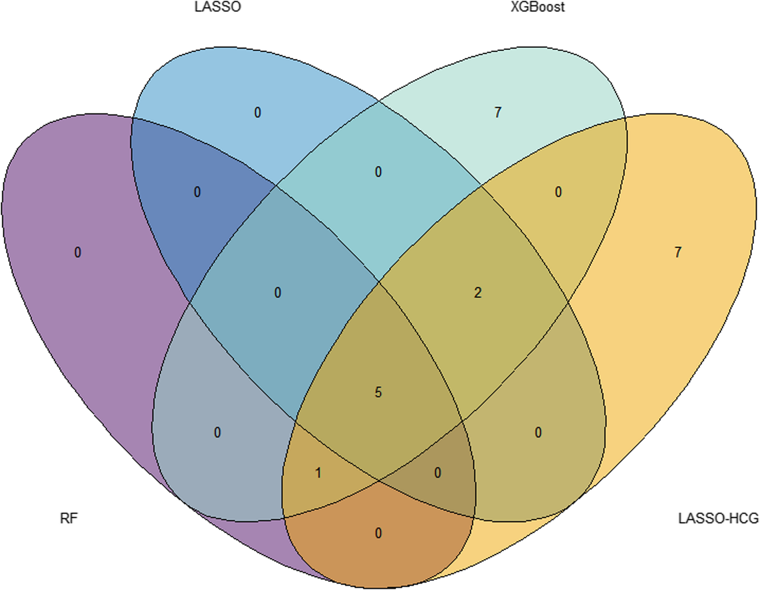 圖1 通過四種方法篩選Wayne圖變量