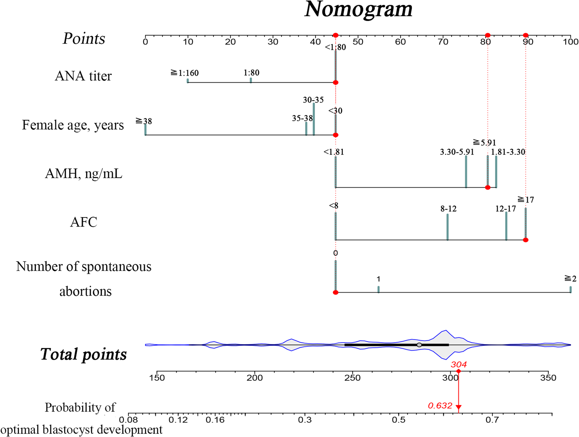 圖2 用于預(yù)測最佳囊胚發(fā)育的列線圖可視化