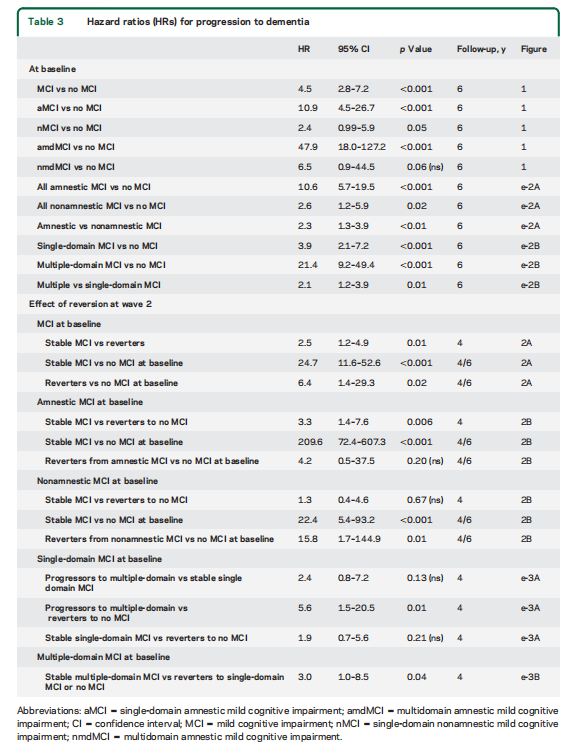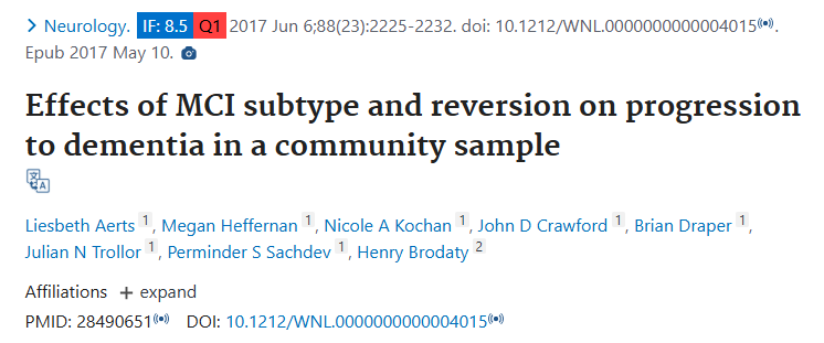 2017年5月,新南威爾士大學(xué)的Henry Brodaty教授和Liesbeth Aerts博士團(tuán)隊(duì)在Neurology發(fā)表了一項(xiàng)前瞻性隊(duì)列研究,結(jié)果顯示MCI的總體患病率保持穩(wěn)定,但個(gè)體層面的亞型轉(zhuǎn)變和向正常認(rèn)知(NC)的“恢復(fù)”很常見。該研究發(fā)現(xiàn),雖然MCI恢復(fù)者和MCI穩(wěn)定者進(jìn)展為癡呆癥的風(fēng)險(xiǎn)均高于基線正常人群,但這種風(fēng)險(xiǎn)在不同MCI亞型中存在差異:遺忘型MCI(aMCI)的恢復(fù)預(yù)示著風(fēng)險(xiǎn)顯著降低,而非遺忘型MCI(naMCI)的恢復(fù)者進(jìn)展風(fēng)險(xiǎn)依然較高。